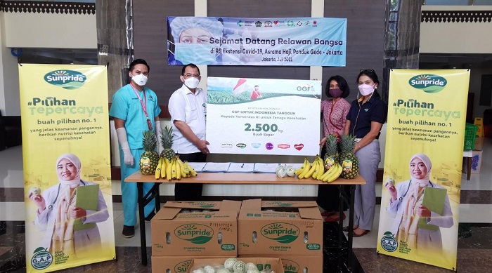 Sedangkan kerjasama antara GGF dengan Kemenkes RI berupa donasi buah Jambu Crystal Sunpride sebanyak 2.500 kg yang diserahkan kepada Rumah Sakit Darurat Covid-19 Asrama Haji, Pondok Gede, Jakarta Timur.