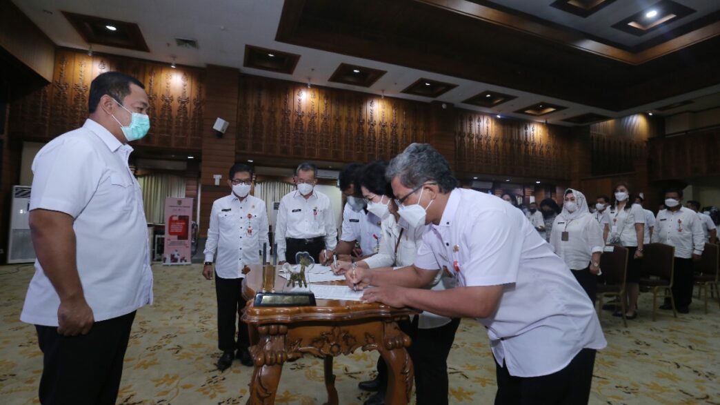 Semarang, UP Radio – Wali Kota Semarang Hendrar Prihadi melantik 127 pejabat eselon III Pemerintah Kota Semarang, Senin (18/10) pagi di Ruang Lokakrida Lantai 8, Gedung Moh Ihsan, Balaikota Semarang.