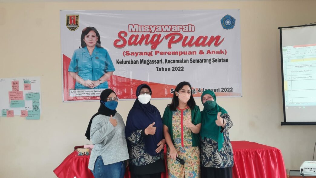 Agar anggaran dapat dimanfaatkan dengan baik, Pemerintah Kota Semarang menggelar kegiatan musyawarah Sang Puan (Sayang Perempuan dan Anak). Kegiatan musyawarah ini diselenggarakan di setiap kelurahan, satu diantaranya di Kelurahan Mugassari, Semarang Selatan, Selasa (4/1/2022).