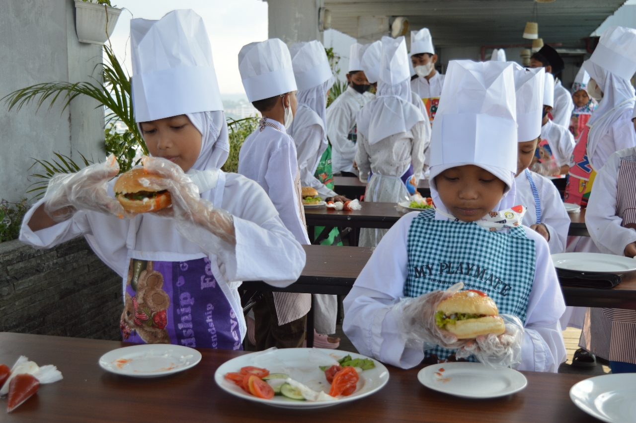 Acara yang digelar di Horison Ultima Semarang lantai 30 / Kurulu Sky Lounge (25/5) sangat meriah saat anak-anak antusias mengikuti Cooking Class yang dipimpin oleh jajaran head chef dari Horison Hotels Region Semarang dengan membuat kreasi mini burger.