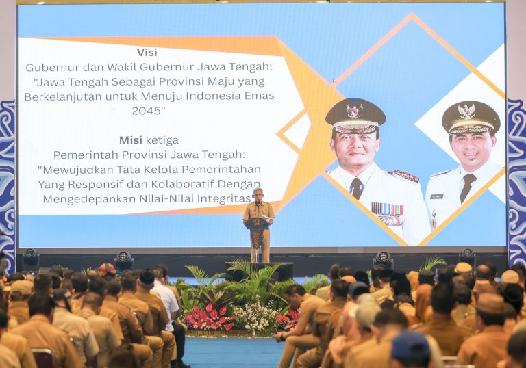Semarang, UP Radio – Senyum dan semangat terpancar dari 7.810 kepala desa se-Jawa Tengah, saat mengikuti kegiatan Sekolah Antikorupsi, di GOR Indoor Kompleks Stadion Jatidiri Kota Semarang, Selasa (29/4/2025). Sekolah Anti Korupsi “Ngopeni Nglakoni Desa Tanpo Korupsi“, Gubernur Jateng Ahmad Luthfi, mengajak para kades mencegah korupsi, terutama memanfaatkan anggaran yang diterima desa dengan bijak.