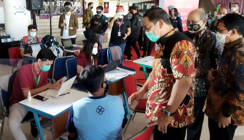“Kemampuan 8 sentra vaksin di Kota Semarang dan regulernya di 37 Puskesmas setiap hari sekitar 15.000 vaksin. Kalau masih mau mengejar 600.000 lagi ya butuh 1,5 bulan, dengan catatan vaksinnya selalu ada,” terang Wali Kota Semarang yang akrab disapa Hendi tersebut saat meninjau kegiatan vaksinasi bersama Kepala OJK KR 3 Jateng DIY Aman Santosa dan jajaran pimpinan Perbankkan di Holly Stadium Semarang, Selasa (13/7).