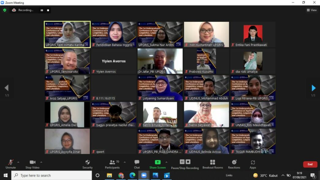 Acara The 1st Undergraduate Conference diselenggarakan secara virtual dengan tema Envisioning Opportunities of EFL in Post Pandemic baru baru ini.
