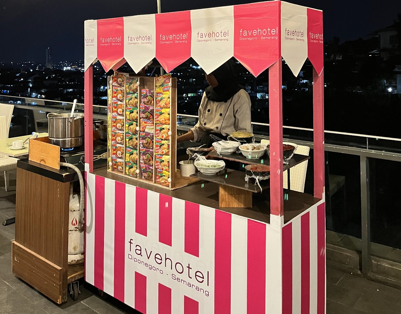 “Kita ingin membawa konsep baru, terutama di area Balcony Resto. Akan ada beberapa pilihan menu makanan dann minuman baru. Jadi, nanti nongkrong di hotel tidak perlu mahal. Untuk saat ini dipilih angkringan, kita ingin memperkenalkan makanan murah tapi nongkrong asyik sambil duduk menikmati keindahan citylight kota Semarang” kata Hotel Manager favehotel Diponegoro Semarang, Yudha Pranoto.