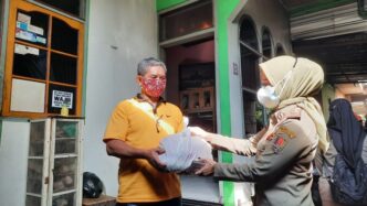 Satpol PP Kota Semarang Edukasi Prokes Sembari Bagi Sembako