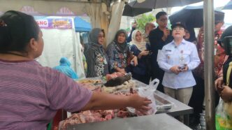 Agustina juga meninjau UMKM binaan Dinas Pertanian yang menjual daging dan beras dengan harga murah.