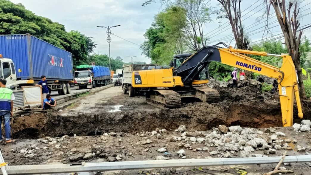 Semarang, UP Radio – Balai Besar Pelaksanaan Jalan Nasional atau BBPJN Jateng-DIY melakukan penggantian box cross drain di ruas Jalan Walisongo KM 13+100, Kelurahan Randugarut, Kecamatan Tugu guna mengatasi genangan air akibat hujan deras selama puncak musim hujan. Box cross drain yang semula berukuran 1×1 meter diganti ke ukuran yang lebih besar menjadi 2×2 meter.