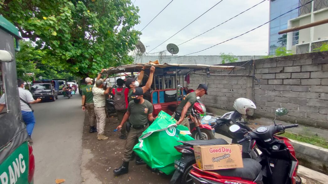 Sekira pukul 10.00 WIB personel Satpol PP membawa dua mobil operasi dan satu truk beserta puluhan anggota tiba dilokasi dan langsung membongkar serta mengangkuti lapak PKL yang berjejer di atas saluran air depan RSWN.