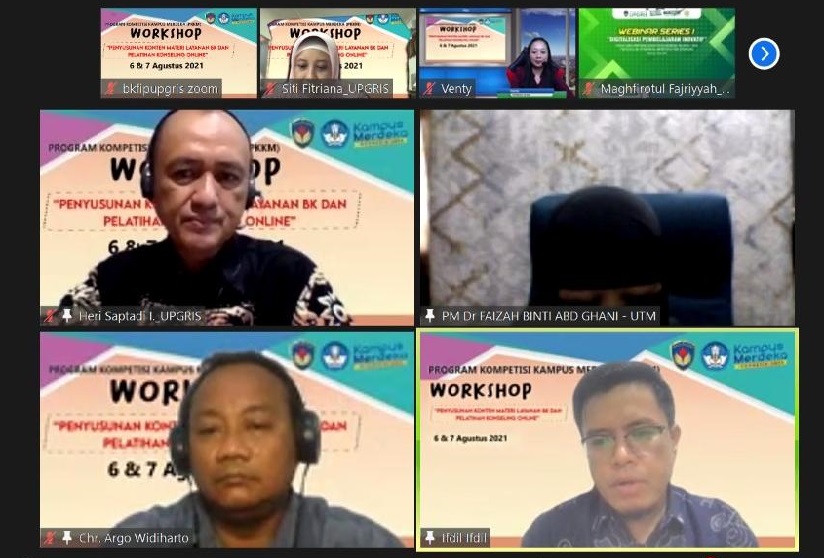 Semarang, UP Radio – Program Studi Bimbingan dan Konseling (BK) Fakultas Ilmu Pendidikan Universitas PGRI Semarang (FIP UPGRIS) menyelenggarakan Workshop drngan tema penyusunan konten materi layanan BK dan pelatihan konseling online.