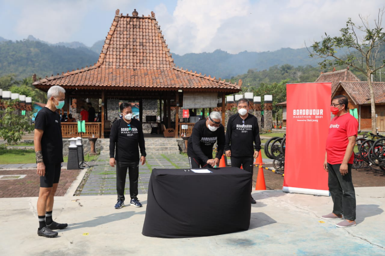 Magelang, UP Radio – Gubernur Jawa Tengah Ganjar Pranowo berharap penyelenggaraan Borobudur Marathon (BorMar) 2021 bisa lebih melibatkan partisipasi masyarakat seperti sebelum pandemi. Hal itu disampaikan Ganjar usai menyaksikan penandatanganan nota kesepahaman Borobudur Marathon 2021 dan Tour de Djawa antara Bank Jateng dan Kompas di Balkondes Ngadiharjo, Magelang, Sabtu (29/5/2021).