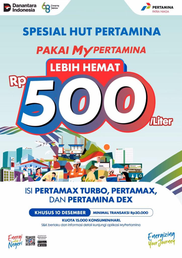 “Promo ini kami siapkan supaya perjalanan liburan masyarakat lebih hemat dan nyaman, dengan transaksi digital yang cepat di SPBU,” tambah Taufiq.