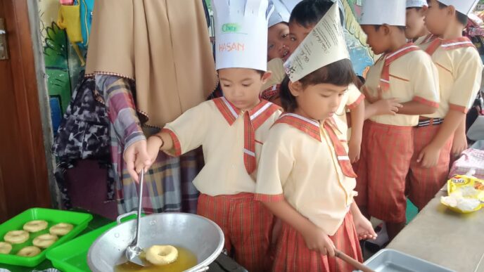 Pendidikan Latih Motorik dan Kreativitas, Belasan Murid TK Pamardiyoga Berlatih Membuat Donat. 11 April 2023
