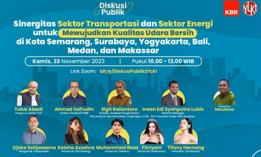 Jakarta, UP Radio – Radio KBR Jakarta bersama Yayasan Lembaga Konsumen Indonesia (YLKI) menggelar dialog publik bertema ‘Sinergitas Sektor Transportasi dan Energi dalam Pengendalian Pencemaran Udara di Indonesia; khususnya di Surabaya, Yogjakarta, Semarang, Denpasar, Medan dan Makasar’, Kamis (23/11).