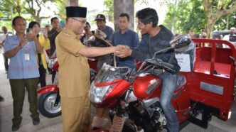 Boyolali, UP Radio – Pemerintah Kabupaten Boyolali melalui Dinas Pertanian (Dispertan) setempat menyalurkan bantuan sepeda motor khusus angkut panen dan benih padi, bagi para petani tembakau dan petani padi. Bantuan diserahkan oleh Bupati Boyolali M. Said Hidayat, di halaman kantor Dispertan Kabupaten Boyolali, Selasa (7/3/2023).