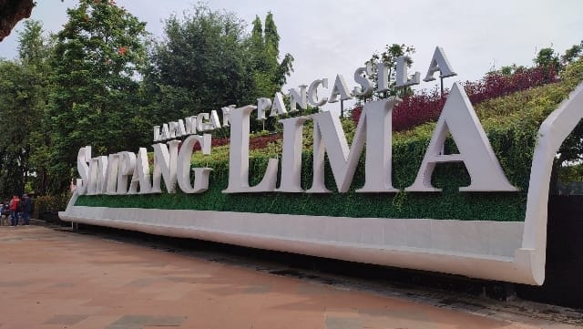 Adapun pada landmark tersebut tercantum latar belakang Lapangan Pancasila Simpanglima.