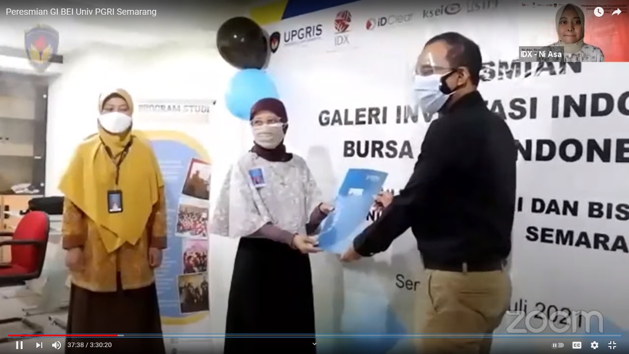 “Sebelum webinar juga dilakukan penandatanganan naskah kerjasama pemasyarakatan dan edukasi pasar modal antara PT Bursa Efek Indonesia dengan Fakultas Ekonomi dan Bisnis UPGRIS dan PT CGS-CIMB sekuritas Indonesia,” terang Efriyani.