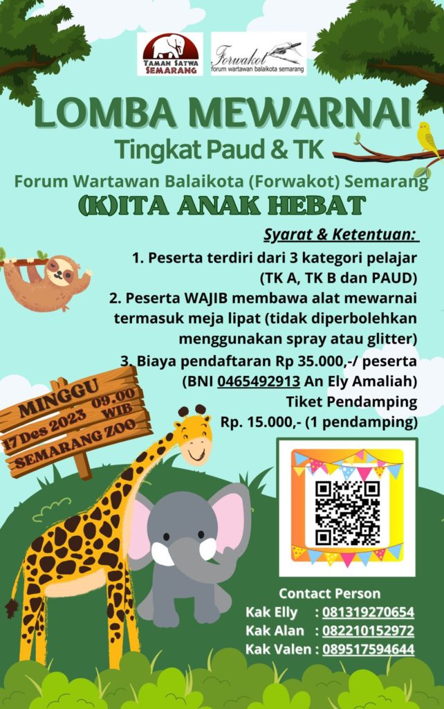 “Melalui kegiatan ini diharapkan Forwakot mampu menjadi katalisator kegembiraan dalam menghibur anak-anak PAUD dan TK di Kota Semarang. Selain itu, tujuan lain dari diadakannya lomba ini adalah untuk berkontribusi terhadap tumbuh dan kembang anak-anak di Kota Semarang,” ujar Aden pada Rabu (6/12/2023).