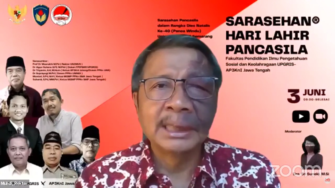 Sementara itu rektor UPGRIS Dr Muhdi SH MHum dalam sambutanya menyampaikan bahwa UPGRIS sebagai perguruan tinggi yang konsisten, komitmen, dan tetap mempertahankan mata kuliah Pancasila secara mandiri.