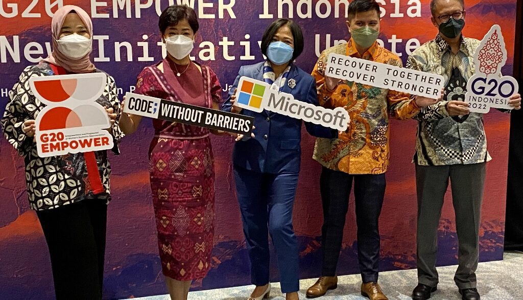 Jakarta, UP Radio – Group of Twenty (G20) EMPOWER Presidensi Indonesia menandatangani Memorandum Of Understanding (MoU) dengan Microsoft Indonesia untuk pelaksanaan program Code; Without Barriers.