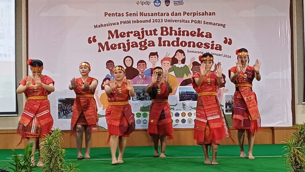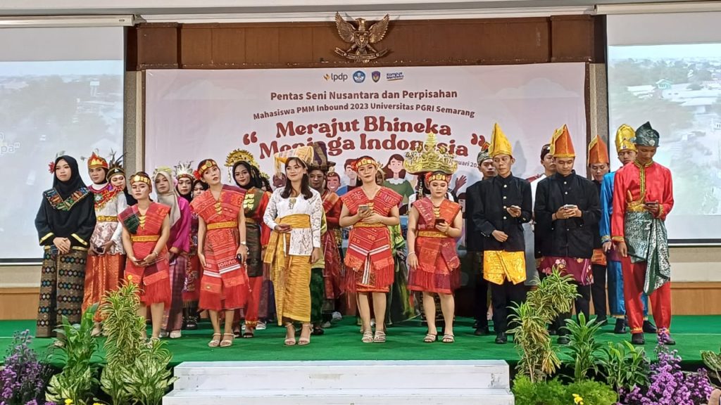 “66 mahasiswa tersebut berasal dari 27 perguruan tinggi di Indonesia dan bisa berbaur bersama dan saling menguatkan, saling mengisi dan saling menjaga kebersamaan,” kata Sri Suciati saat menyaksikan Pentas Seni Nusantara dan Perpisahan Mahasiswa PMM 3 Inbound 2023 UPGRIS “Merajut Bhineka Menjaga Indonesia” di kampus IV UPGRIS, Jalan Gajah Raya Semarang, Jumat (19/1/2024).