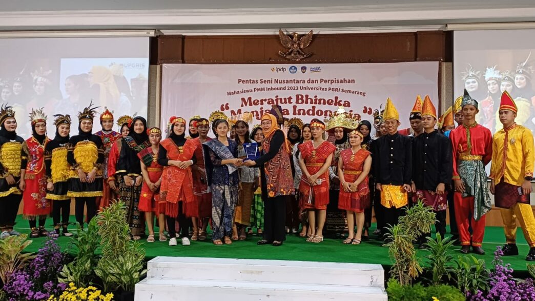 “66 mahasiswa tersebut berasal dari 27 perguruan tinggi di Indonesia dan bisa berbaur bersama dan saling menguatkan, saling mengisi dan saling menjaga kebersamaan,” kata Sri Suciati saat menyaksikan Pentas Seni Nusantara dan Perpisahan Mahasiswa PMM 3 Inbound 2023 UPGRIS “Merajut Bhineka Menjaga Indonesia” di kampus IV UPGRIS, Jalan Gajah Raya Semarang, Jumat (19/1/2024).