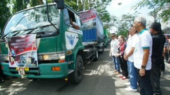 Gubernur Jawa Tengah, Ganjar Pranowo, pun kembali melepas ekspor produk UMKM Jateng ke berbagai pasar dunia, Jumat (12/5//2023). Sebanyak tujuh kontainer yang memuat beragam produk UMKM senilai Rp7,2 miliar, dilepas Ganjar di depan Hotel Java Heritage Banyumas.