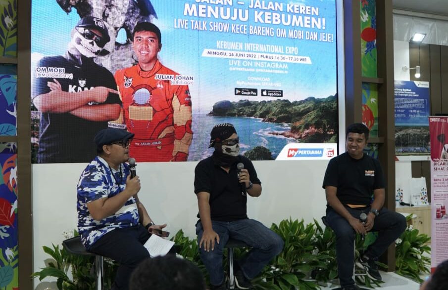 Kebumen, UP Radio – Dalam rangka memeriahkan acara Kebumen International Expo di Alun-Alun Kota Kebumen, Pertamina berpartisipasi dengan menggelar talkshow bersama MobiTV atau yang biasa dipanggil Om Mobi serta Julian Johan atau Jejelogy. Keduanya merupakan influencer terkemuka di dunia otomotif Indonesia.