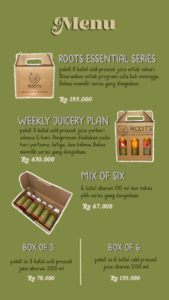 Jus buah dan sayur organik dengan label ‘Roots Juicery’ (IG @rootsjuicery.smg) yang dibuat oleh Rida Shafa Salsabila Ananda Putri (19) bersama adiknya Rafif Abrar (16) ternyata sangat diminati oleh pelanggannya.