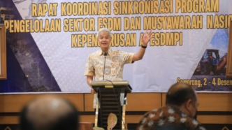 Semarang, UP Radio – Gubernur Jawa Tengah Ganjar Pranowo membuka acara rapat koordinasi Sinkronisasi Program Pengelolaan Sektor ESDM dan Musyawarah Nasional Kepengurusan Asosiasi Dinas Pengelola ESDM Provinsi Se-Indonesia (APESDMPI) di kantor Dinas ESDM Jawa Tengah, Jumat (3/12).
