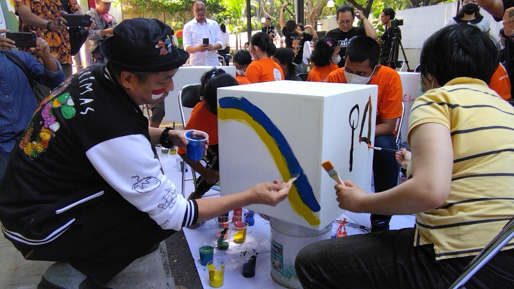 Direktur PT Marifood, Harjanto Halim mengungkapkan krhadiran para difabel sengaja didatangkan untuk melukis di kotak boks yang telah disediakan.