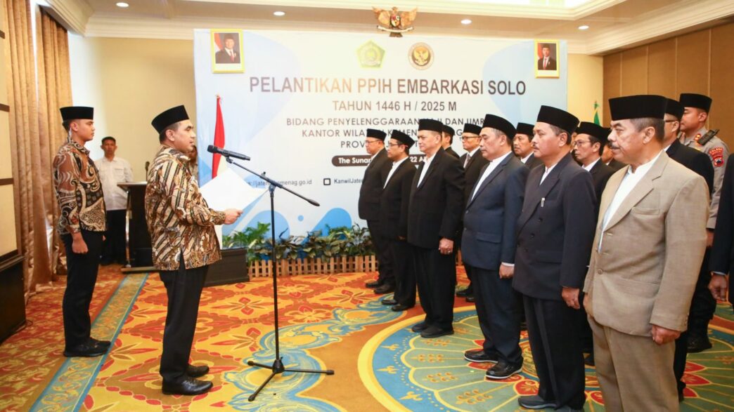 Surakarta, UP Radio – Wakil Gubernur Jawa Tengah Taj Yasin melantik Panitia Penyelenggara Ibadah Haji (PPIH) Embarkasi Solo (SOC) Tahun 1446 H/2025 M, di Hotel Sunan, Surakarta, Selasa (22/4/2025). Sebanyak 23 PPIH dikukuhkan untuk melayani 33.900 jemaah haji dari Jawa Tengah dan Yogyakarta, melalui Embarkasi Solo.