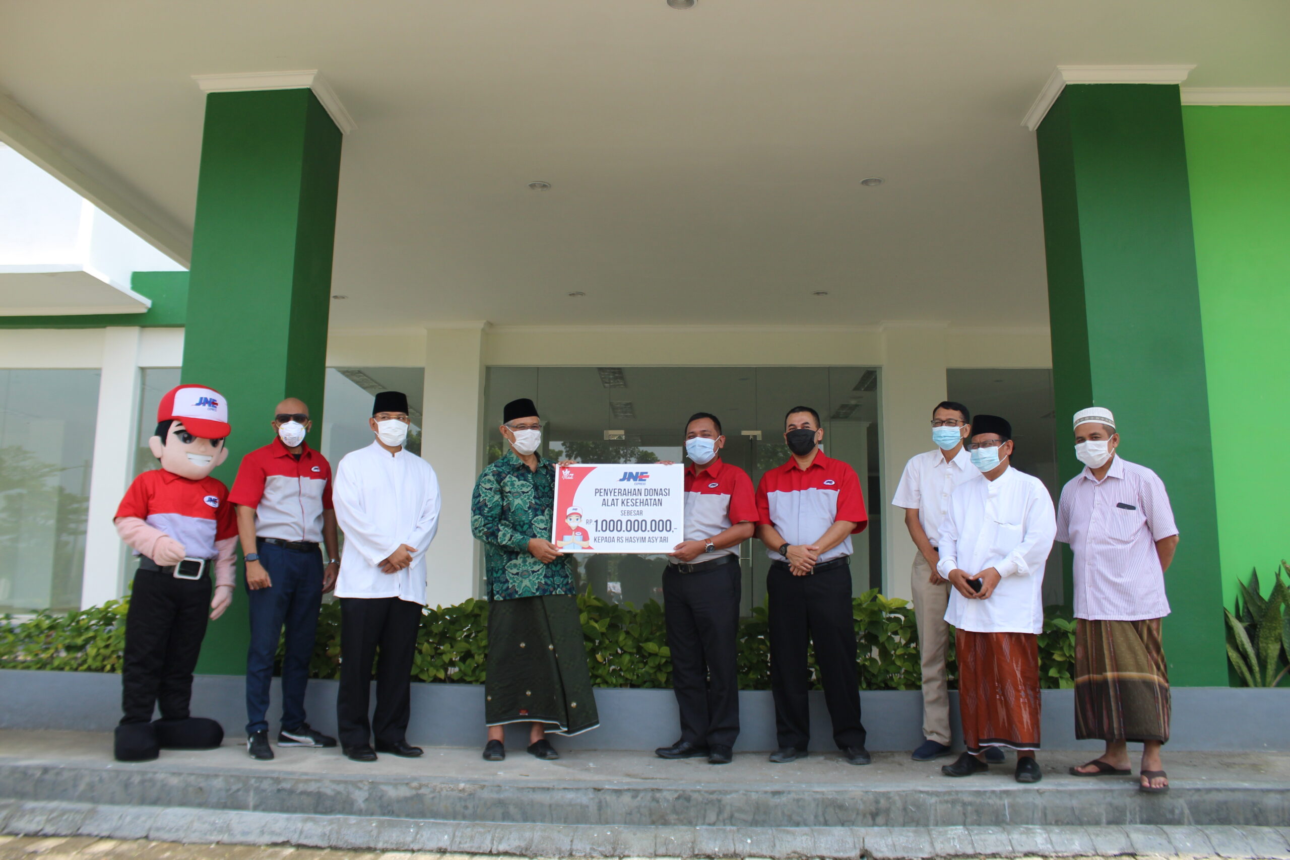 VP Of Marketing JNE Eri Palgunadi dan jajaran JNE dari Cabang Jombang dan Mojokerto menyalurkan donasi untuk pembangunan Rumah Sakit Hasyim Asy’ari Rabu (28/4).
