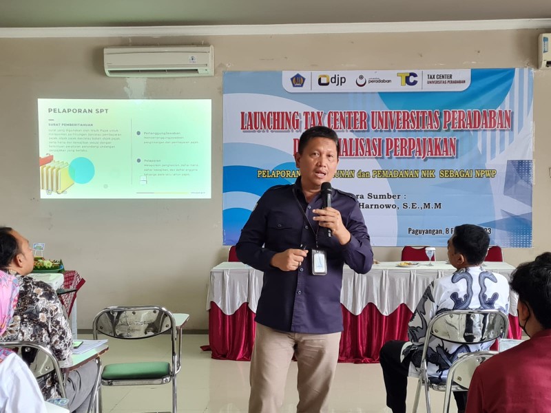 Universitas Peradaban merupakan Perguruan Tinggi ke-25 yang bekerja sama dengan Kanwil DJP Jawa Tengah I dalam hal pembentukan Tax Center.