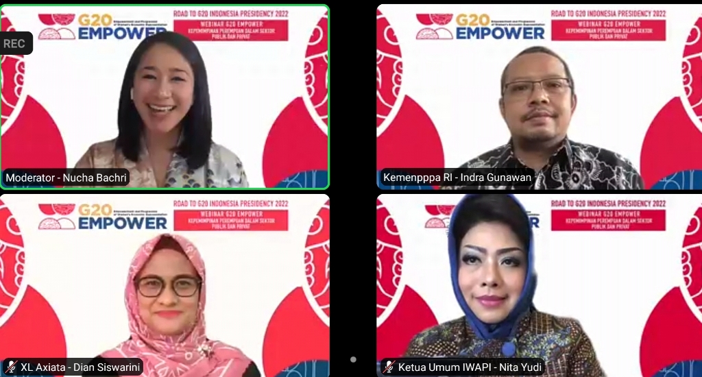 Webinar ini merupakan bagian dari rangkaian agenda menyambut pelaksanaan “G20 Presidensi Indonesia 2022”, di mana Indonesia juga akan memegang posisi presidensi untuk Forum G20 Empower. Menteri Pemberdayaan Perempuan dan Perlindungan Anak RI, Bintang Puspayoga hadir secara online membuka webinar yang menampilkan narasumber Plt. Deputi Bidang Partisipasi Masyarakat Kemen PPPA, Indra Gunawan, Ketua Umum DPP IWAPI, Nita Yudi, serta Presiden Direktur dan CEO XL Axiata, Dian Siswarini.