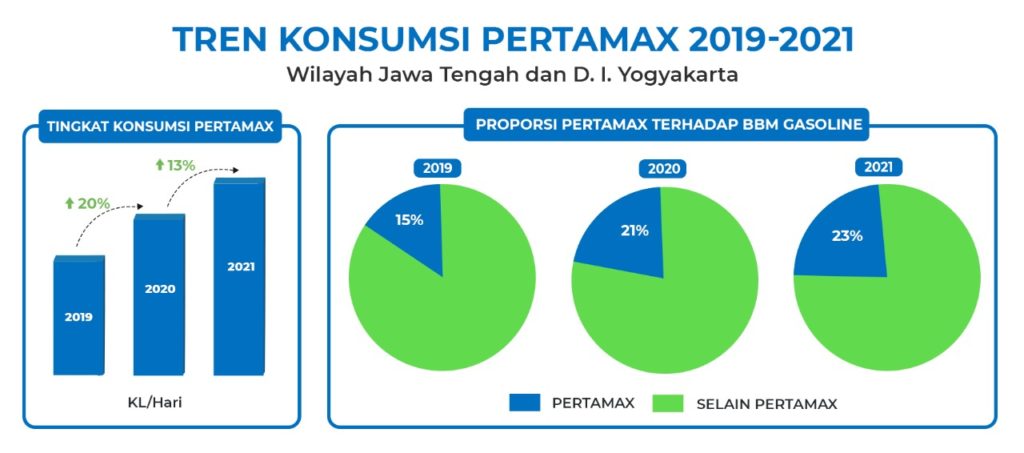 Unit Manager Communication, Relations, & Corporate Social Responsibility (CSR) Pertamina Pemasaran Regional Jawa Bagian Tengah Brasto Galih Nugroho menuturkan salah satu produk BBM dari Pertamina yang memiliki RON 92 yaitu Pertamax, terus mengalami tren peningkatan konsumsi dalam kurun tiga tahun terakhir, khususnya di wilayah Jawa Tengah dan Daerah Istimewa Yogyakarta (DIY).