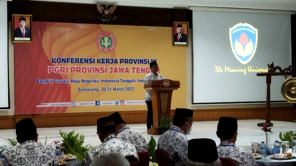 Semarang, UP Radio – Pengurus Daerah PGRI Propinsi Jawa Tengah menggelar Konferensi kerja propinsi III PGRI Jateng dengan tema bangkit guruku, Maju Negriku: Indonesia Tangguh Indonesia Tumbuh di kampus IV universitas PGRI Semarang (UPGRIS) 30-31 Maret 2022.