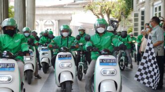 Sekretaris Daerah Kota Semarang, Ir. Iswar Aminuddin M.T melakukan seremoni pelepasan 500 unit motor listrik yang digunakan oleh mitra GrabBike dan mitra pengantaran Grab di Kota Semarang.