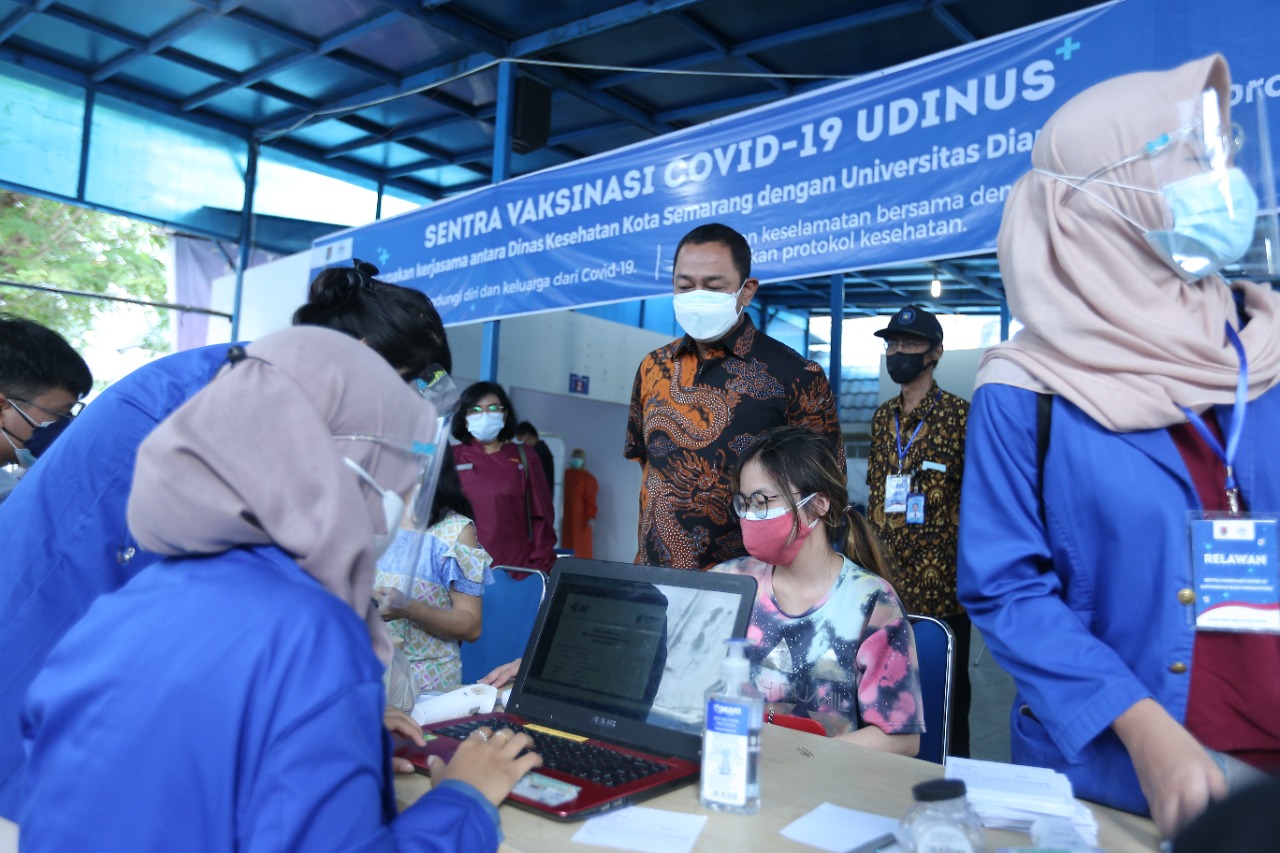 “Hari ini kami melakukan checking proses pemberian vaksinasi yang ada di tiga sentra vaksinasi, yaitu di kantor Kecamatan Pedurungan, UDINUS, serta UNIKA. Dengan begini maka selain vaksinasi regule di Puskesmas dan Rumah Sakit, masyarakat juga dapat mendapatkan vaksin melalui sentra vaksinasi khusus yang didirikan,” teraang Hendi.