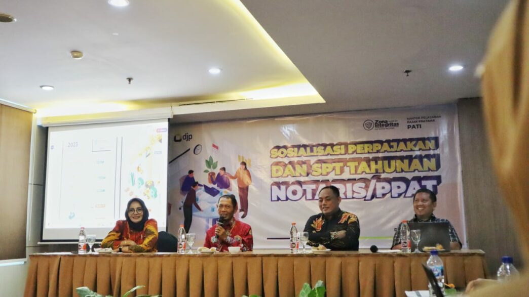 Pati, UP Radio – Kantor Pelayanan Pajak (KPP) Pratama Pati bersama Ikatan Pejabat Pembuat Akta Tanah (IPPAT) dan Ikatan Notaris Indonesia (INI) menggelar Sosialisasi di Hotel Safin Pati, Kamis, (7/3) yang diikuti 45 Notaris dan IPPAT di wilayah Kabupaten Pati dan Rembang.