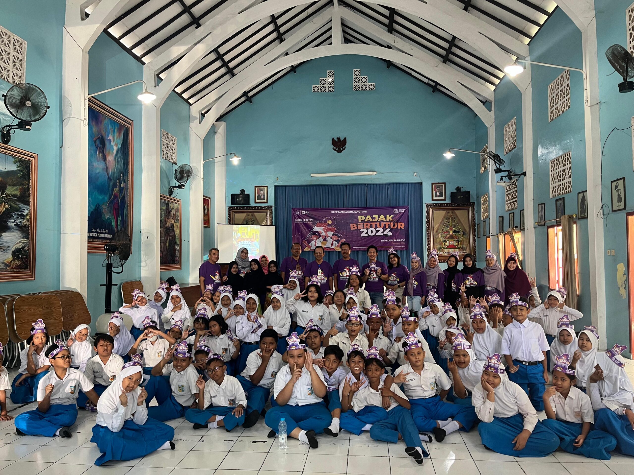 Pajak Bertutur 2024 mengambil tema Lampaui Batas, Bersatu untuk Indonesia Emas dan tagline Sehari Mengenal Selamanya Bangga dengan key message Pajak wujudkan cita-citaku, diikuti 65 siswa SD Negeri Sarirejo.