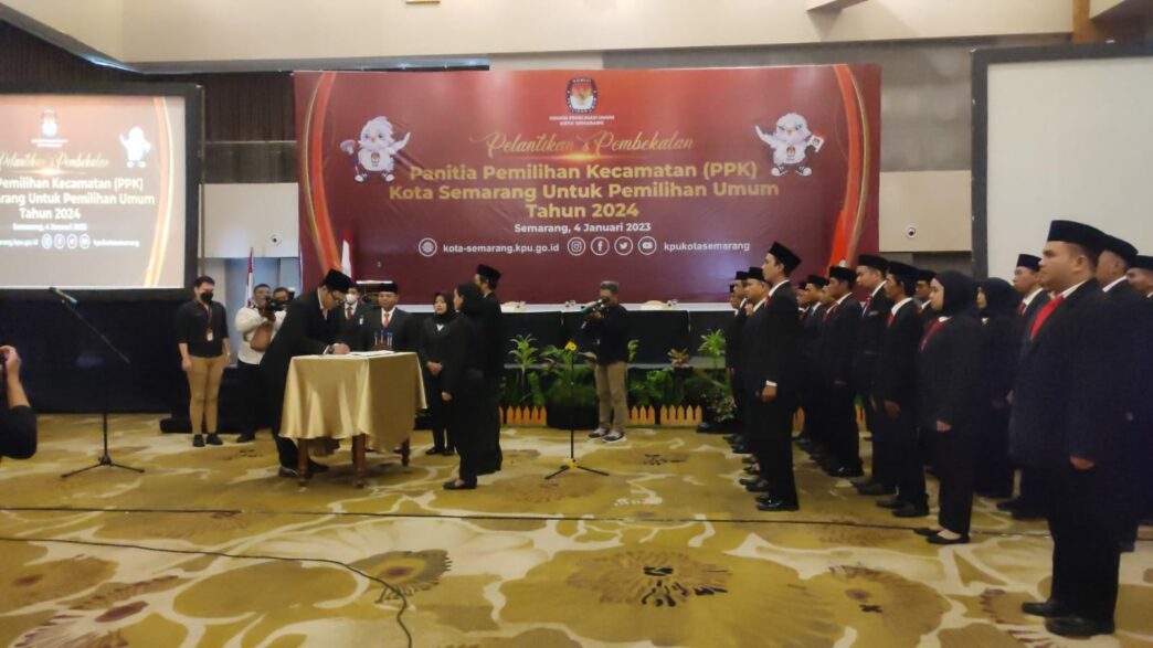 Semarang, UP Radio – Komisi Pemilihan Umum (KPU) melantik 80 orang panitia pemilihan Kecamatan (PPK) Pemilu 2024. 80 orang PPK yang dilantik berasal dari 16 Kecamatan yang ada di Kota Semarang.