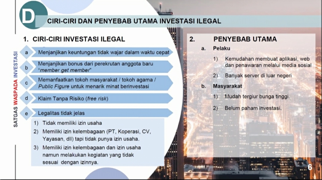 “Kegiatan edukasi kami rasa sangat penting mengingat berdasarkan survei Otoritas Jasa Keuangan (OJK) tahun 2019, tingkat literasi keuangan yang merupakan indeks level pengetahuan masyarakat terhadap jenis produk keuangan di Jawa Tengah tergolong masih rendah yakni sebesar 47,38%, namun sudah lebih tinggi dibandingkan dari Indeks Literasi Nasional sebesar 38,03%. Hal ini mencerminkan masih perlunya edukasi kepada masyarakat tentang produk keuangan, khususnya produk investasi keuangan yang legal”, kata Aman.