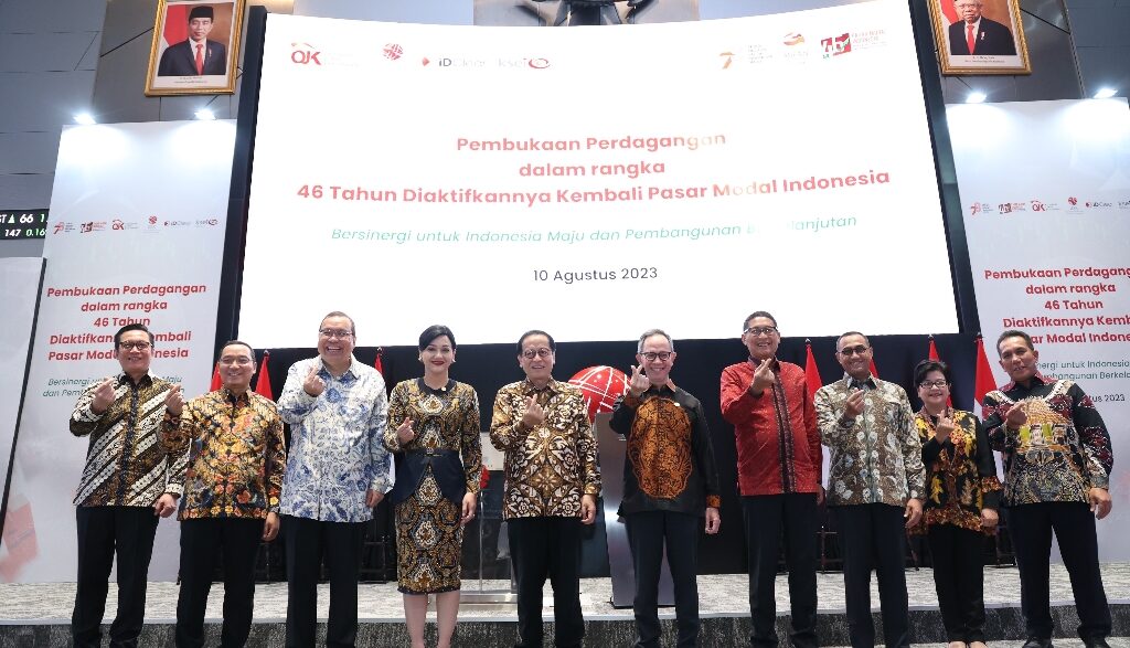 Hari ini (10/8), Otoritas Jasa Keuangan (OJK) bersama Self-Regulatory Organization (SRO)yang terdiri dari PT Bursa Efek Indonesia (BEI), PT Kliring Penjaminan Efek Indonesia (KPEI) dan PT Kustodian Sentral Efek Indonesia (KSEI), juga memperingati 46 Tahun Diaktifkannya Kembali Pasar Modal Indonesia yang mengusung tema “Bersinergi untuk Indonesia Maju dan Pengembangan Berkelanjutan”.