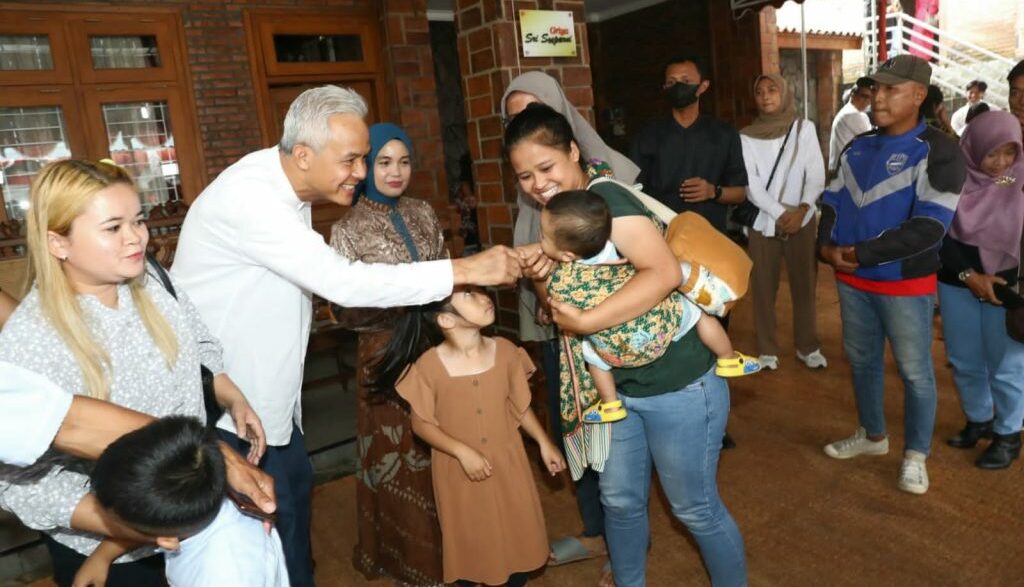 Sejak pukul 08.00 WIB, Ganjar sudah berdiri di depan Griya Sri Suparmi bersama anak dan istri, menyambut masyarakat yang telah berjubel sejak pagi. Satu per satu, warga yang datang berkesempatan untuk bersalaman dan berfoto bersama Ganjar.