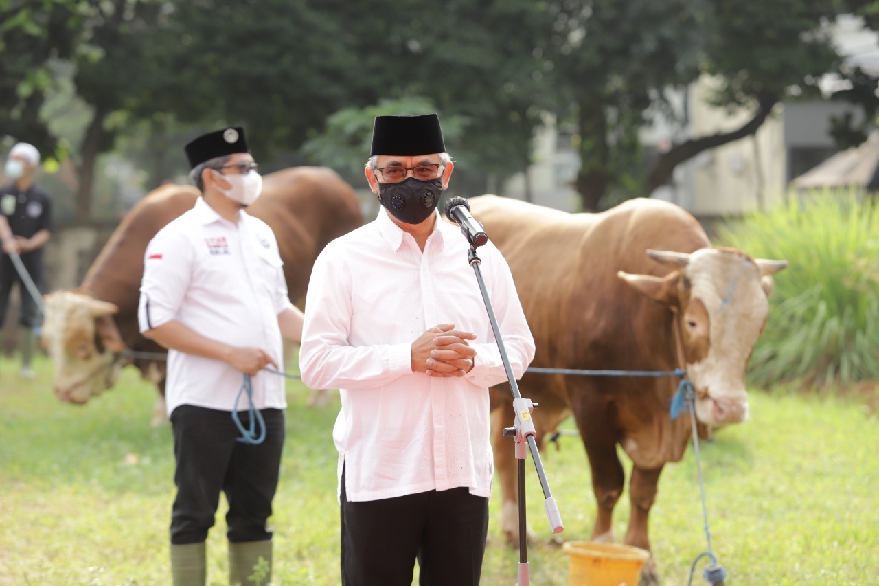 Ketua Dewan Komisioner OJK Wimboh Santoso secara simbolis penyerahan hewan kurban di Jakarta, mengatakan penyembelihan dan pembagian kurban diharapkan dapat membantu masyarakat yang terdampak dari pandemi Covid-19 dan menjadi bagian dari kegiatan sosial yang telah dilakukan OJK dan pegawainya selama ini.
