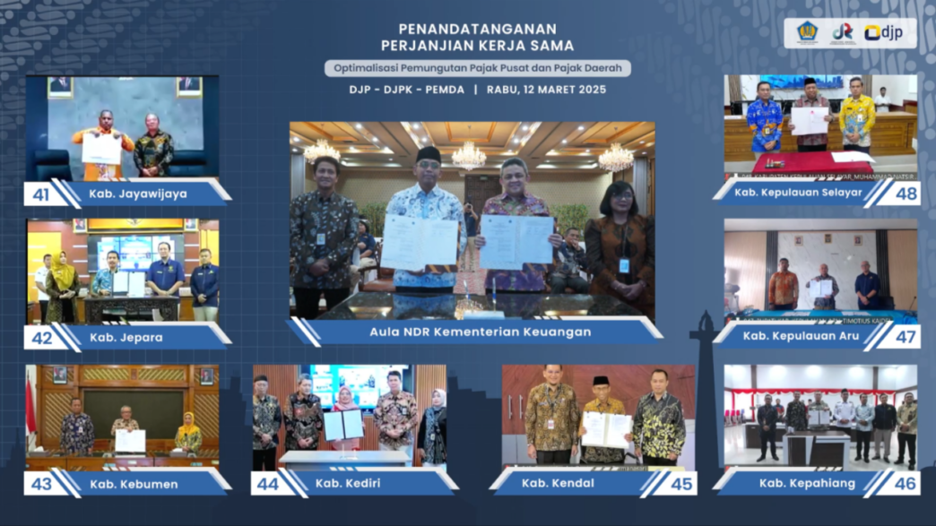 Semarang, UP Radio – 10 Pemda Kab/kota di Jawa Tengah menandatangani Perjanjian Kerja Sama Optimalisasi Pemungutan Pajak Pusat dan Pajak Daerah Tahap VI Tahun 2025 (PKS OP4D) bersama dengan Direktorat Jenderal Pajak (DJP) dan Direktorat Jenderal Perimbangan Keuangan (DJPK) Kementerian Keuangan yang Rabu (12/3/2025).