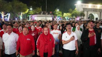 Semarang, UP Radio – Lautan manusia tampak memenuhi halaman Balai Kota Semarang untuk menyaksikan pertandingan sepak bola Piala Asia U-23 antara Timnas Indonesia melawan Uzbekistan, Senin (29/4/2024) malam.