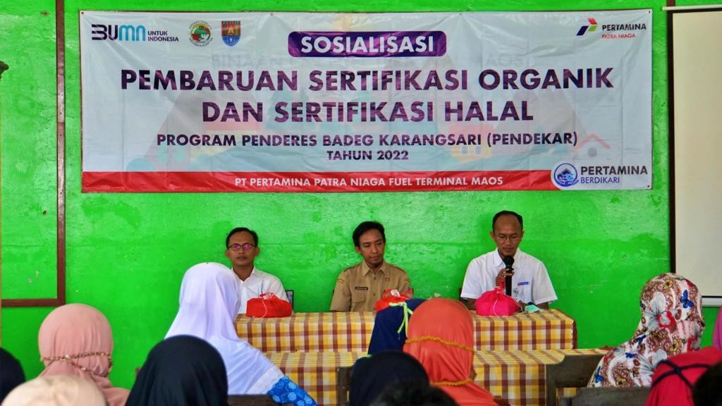 Cilacap, UP Radio – Sebagai upaya dalam memperluas pasar produk gula semut organik khas Cilacap di pasar internasional, Pertamina mendorong sertifikasi organik dan sertifikasi halal kepada kelompok petani atau penderes dari Koperasi Nira Cahaya Sejahtera dan Kelompok Pendekar (Penderes Badeg Karangsari) melalui kegiatan sosialisasi sertifikasi pada Senin (19/9) di Balai Desa Karangsari, Kecamatan Adipala, Kabupaten Cilacap.