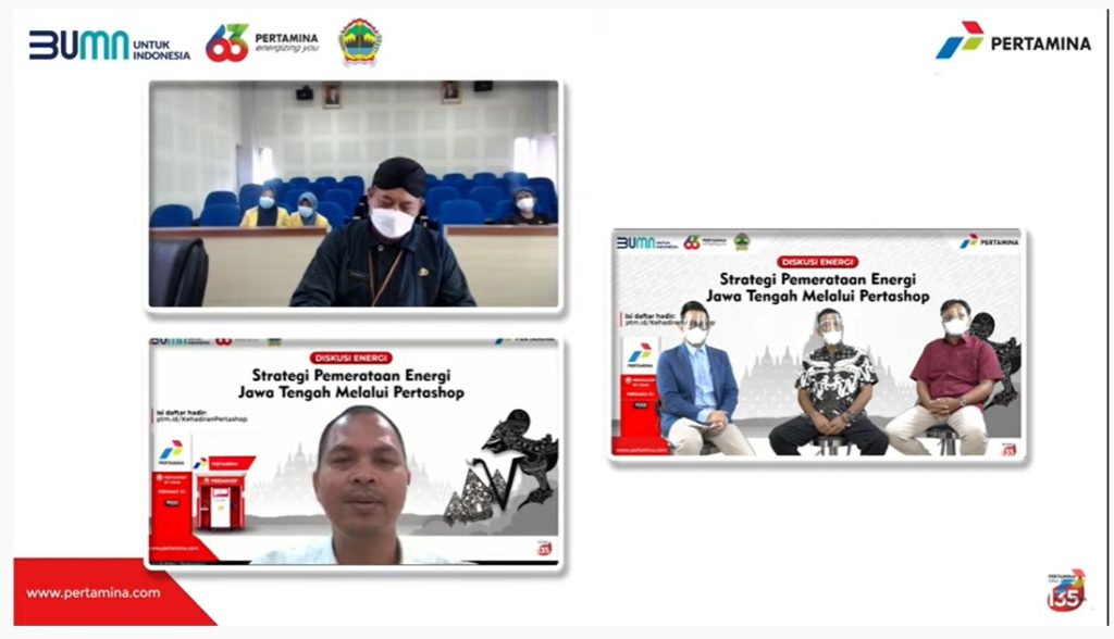 Semarang, UP Radio ― Pertamina kembali mensosialisasikan peluang usaha Pertashop, kali ini disampaikan dalam penyelenggaraan Diskusi Energi bertajuk Strategi Pemerataan Energi Melalui Pertashop secara virtual kepada Badan Usaha Milik Desa (BUMDes) Se-Jawa Tengah, Dinas Pemberdayaan Masyarakat Desa (Dispermades) setiap kabupaten di Jawa Tengah dan pemangku kepentingan lainnya.