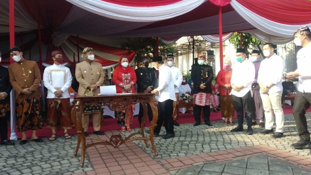 Semarang – Pemerintah Kota (Pemkot) Semarang menggelar upacara HUT ke-474 Kota Semarang di halaman Balai Kota Semarang, Minggu (2/5/2021). Puncak peringatan HUT ini digelar sederhana, terbatas, dan menerapkan protokol kesehatan ketat.